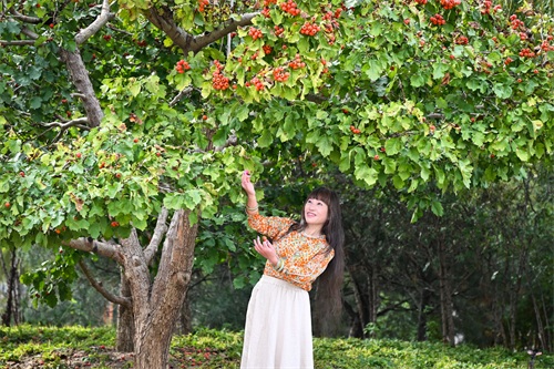 沿着曲折的山路走到半山腰,一片柿子林映入眼帘,现在正是柿子红了的季节,红红的柿子,张开笑脸迎接登山的游客。