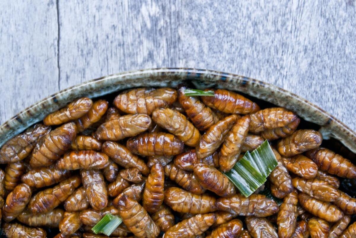 蚕蛹是中国和其他亚洲国家常见的昆虫美食之一。它们通常被油炸或煮熟后食用,具有坚果般的口感和丰富的蛋白质。蚕蛹被认为是一种营养丰富的食物,并在一些地方被视为滋补品。