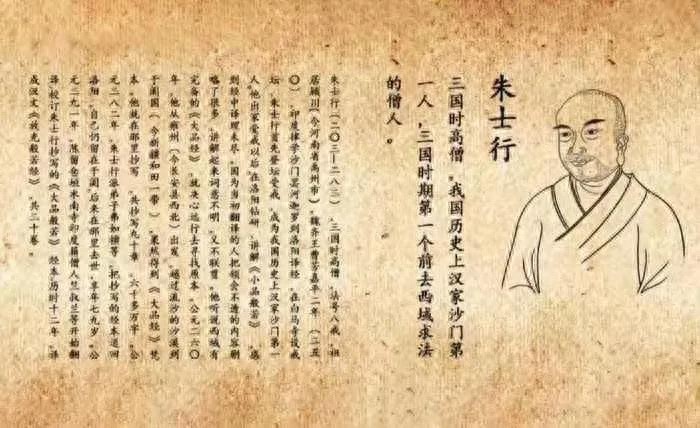 朱士行是中国佛教史上第一个西行求法的中土汉族僧人,也被认为是中国第一个依律受戒成为比丘的汉人。他少年出家,曹魏时期河南颍川人。嘉平二年(250年),印度僧人昙柯伽罗来洛阳译经传教,设戒坛按戒律授戒度僧,朱士行首先登坛依法受戒而成为受戒比丘,这和汉人以前仅仅以离俗为僧有很大差别,所以朱士行是真正意义上的沙门比丘第一人。