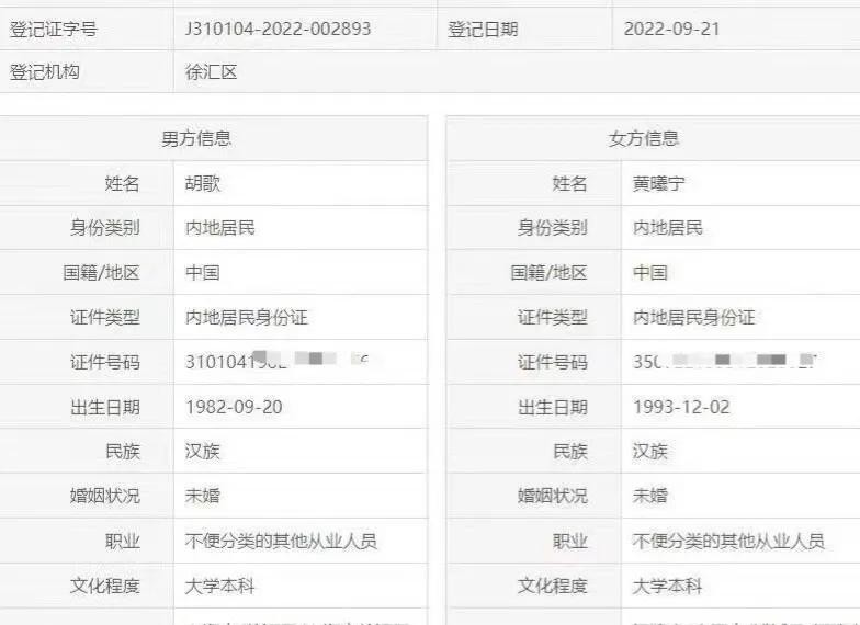 随后有网友晒出了黄曦宁和胡歌结婚登记的资料,俩人是2022年9月份登记了,那时候胡歌还发了一条比耶的动态,结合今天女方生产,可见胡歌这一条动态中包含了太多信息了。
