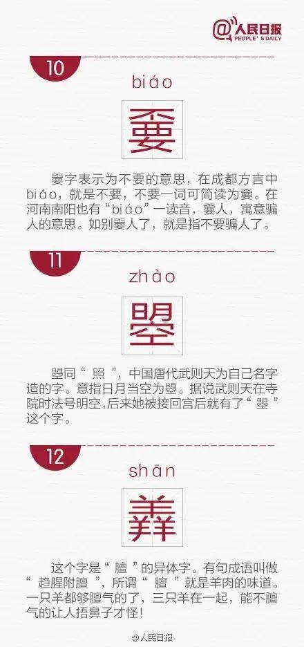 囧、槑、氼、烎、垚、圐圙、嘦、嫑、怹……这些本是汉语中的生僻字,却在网络上被赋予新的意义,意外爆红。但是你知道他们的本来读音和意思吗?戳图30个被冠以各种“最”字的生僻字,你认得几个?转发考考你的小伙伴!