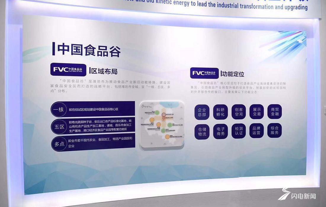 潍坊国家农业开放发展综合实验区中国食品谷项目是省新旧动能转换重大工程,是潍坊市为推动食品产业新旧动能转换、建设国家食品安全区而打造的战略平台,呈“一核、五区、多点”式分布。
