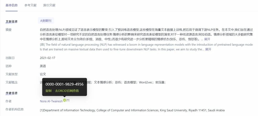 与ORCID达成合作后,科应文献平台将融合ORCID数据,用户在科应,可通过作者标识符(ORCID)找到该作者的全部文献;同时,点击作者标识符,可直接跳转到ORCID官网,一键追溯作者的原始身份信息。