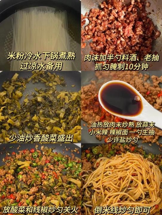 1. 米粉冷水下锅煮熟,捞出过凉水备用。